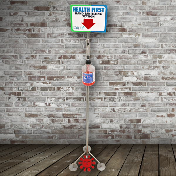 Easy installation antibacterial gel dispenser device. Made of A304 stainless steel, designed to avoid direct contact with the disinfection container. It has a pedal to actuate the flip-top valve. ● 3.5 ft height ● Stainless steel structure ● 500 ml hand sanitizer included ● Free delivery GTA Toronto ● Free installation